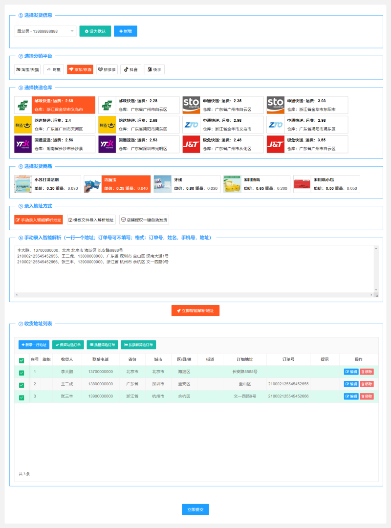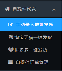 一、自提件购买:点击《自提件代发》->《手动录入地址发货》或《XX一建发货》