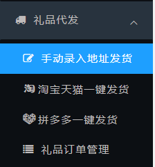 二、礼品购买:点击《礼品代发》->《手动录入地址发货》或《XX一建发货》